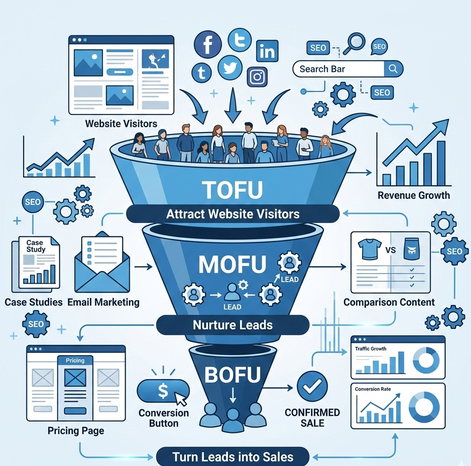 Learn proven TOFU, MOFU, and BOFU content strategies that drive traffic, generate leads, boost SEO rankings, and turn readers into loyal customers.